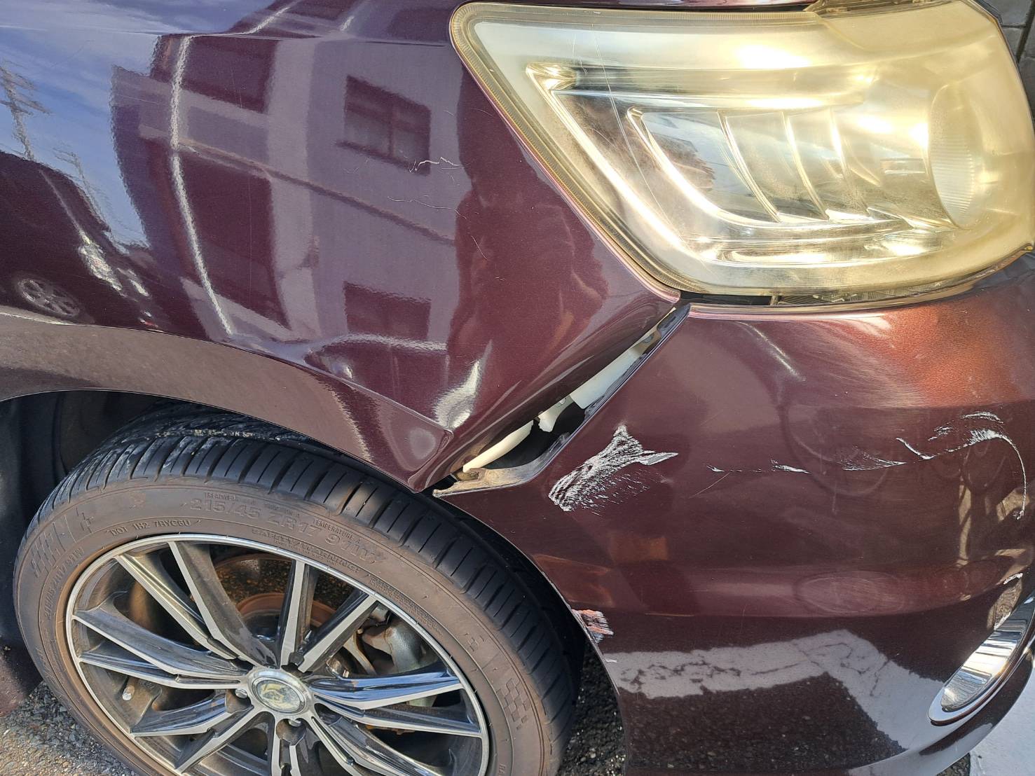京都市K様 日産 セレナ フロントバンパー・フロントフェンダー傷・凹み お見積りしました。