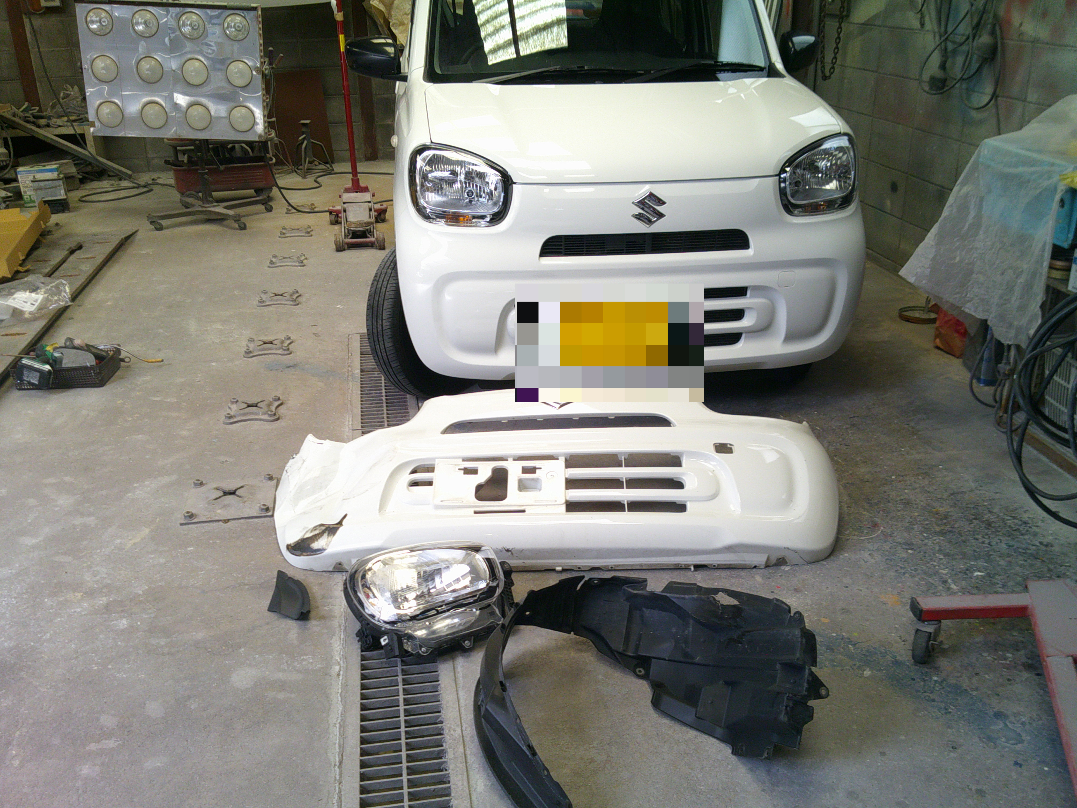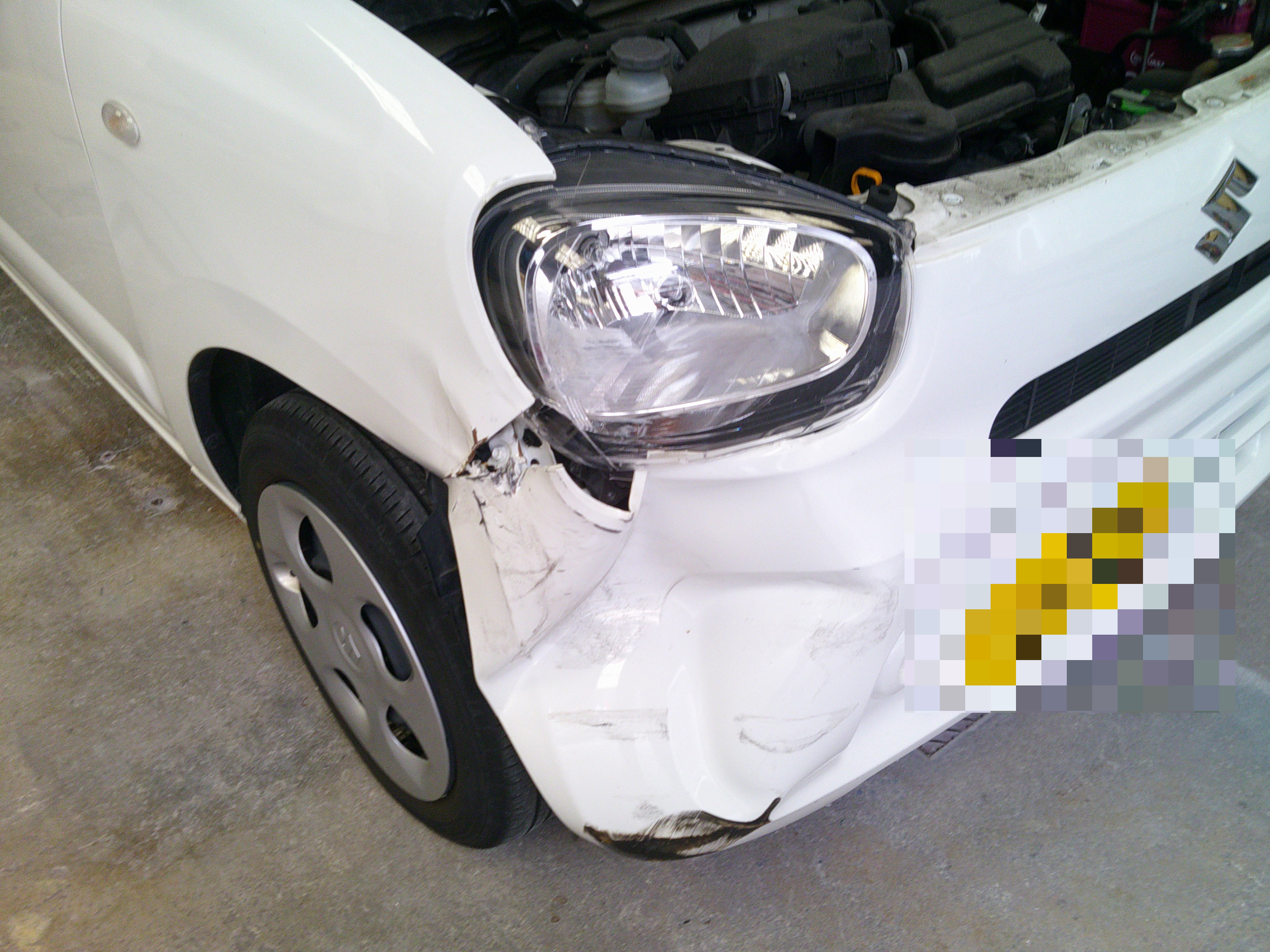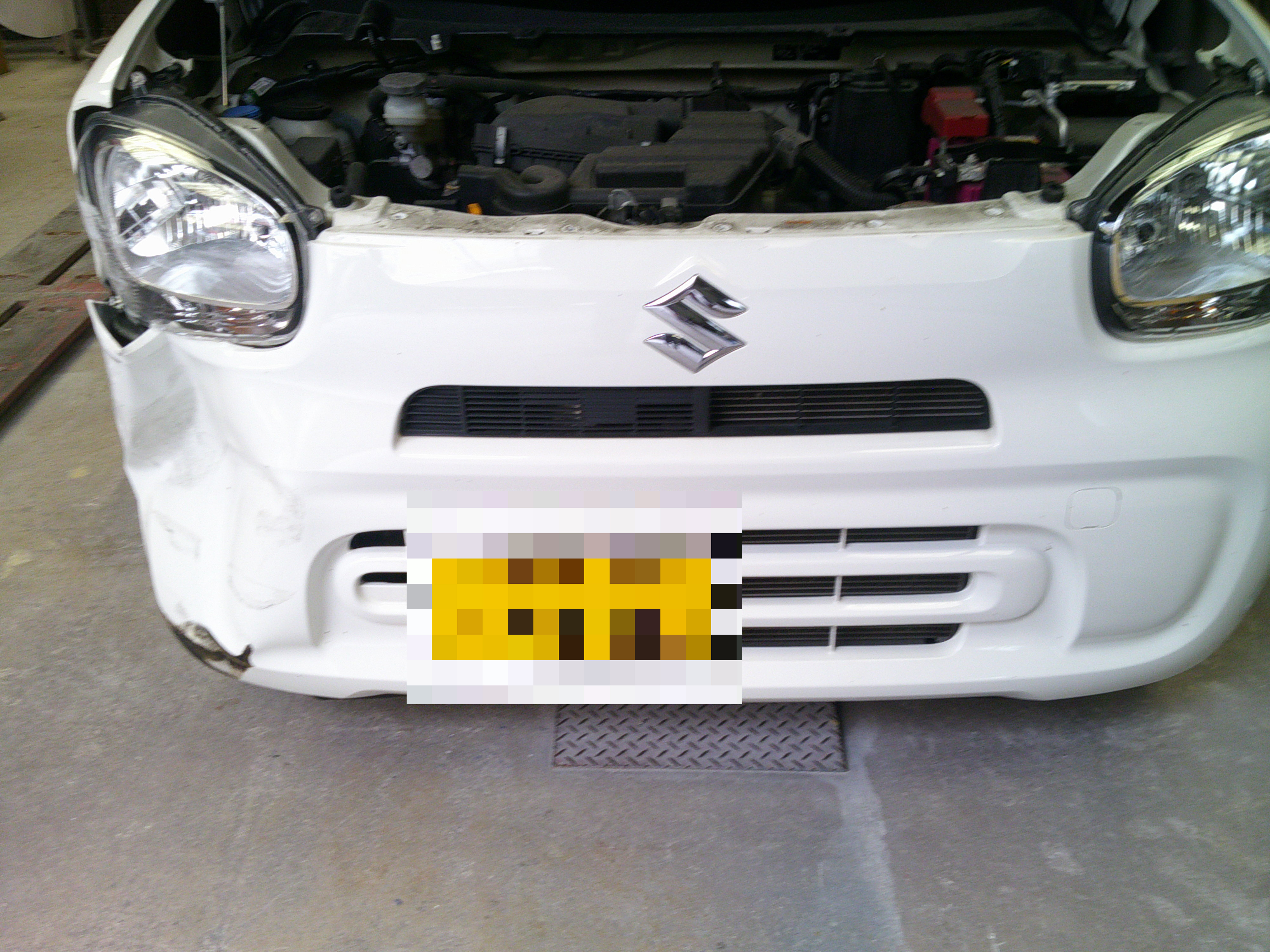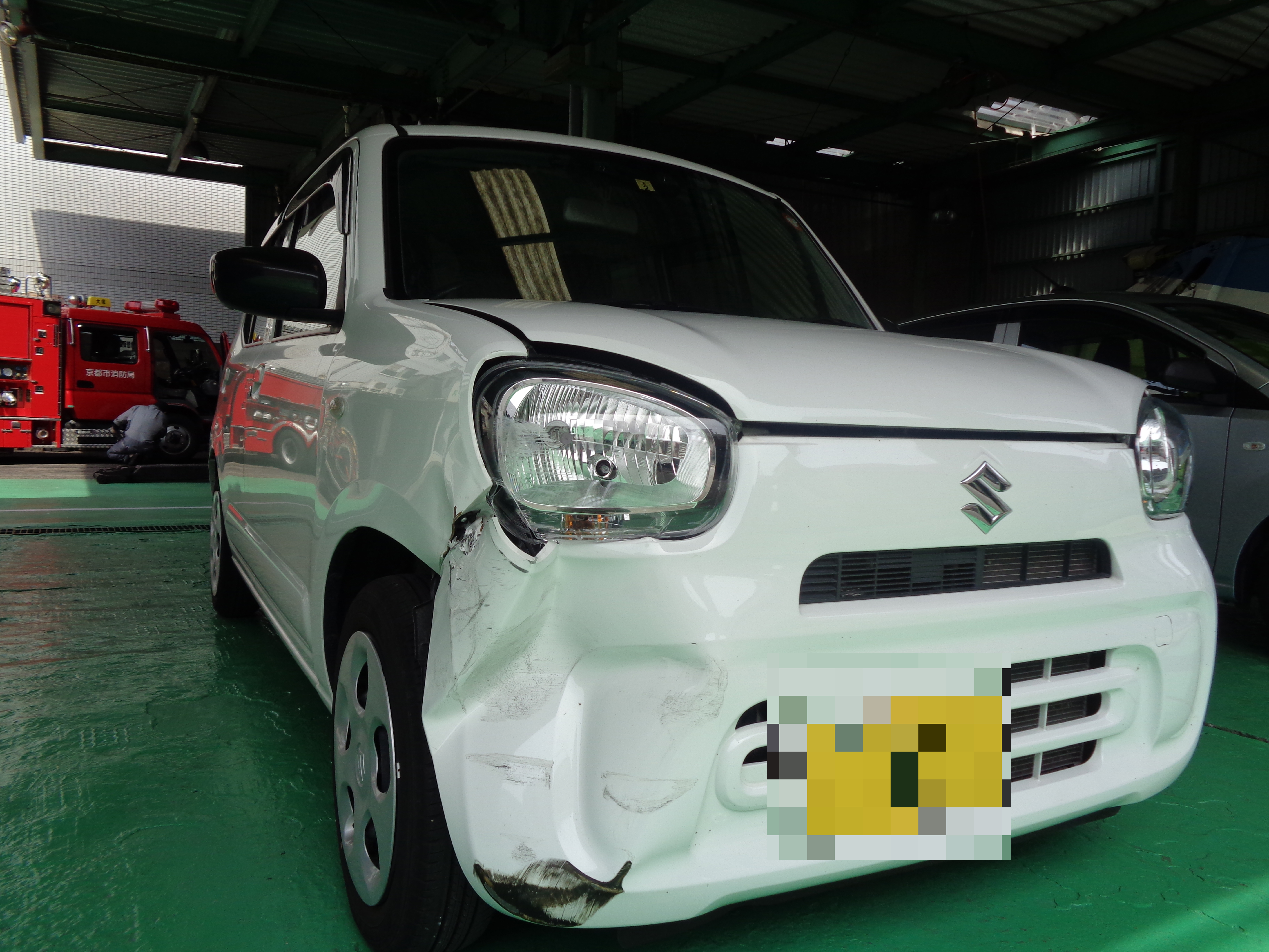 京都市T様 スズキ ラパン フロントバンパー凹み修理 お見積りしました。