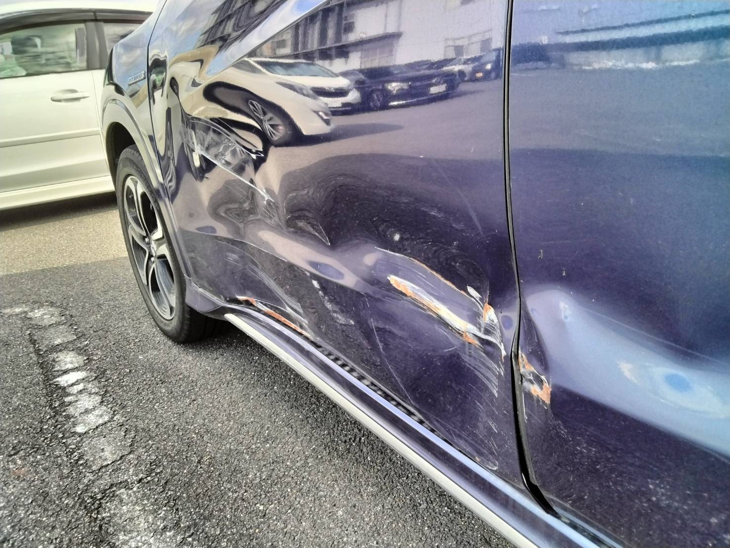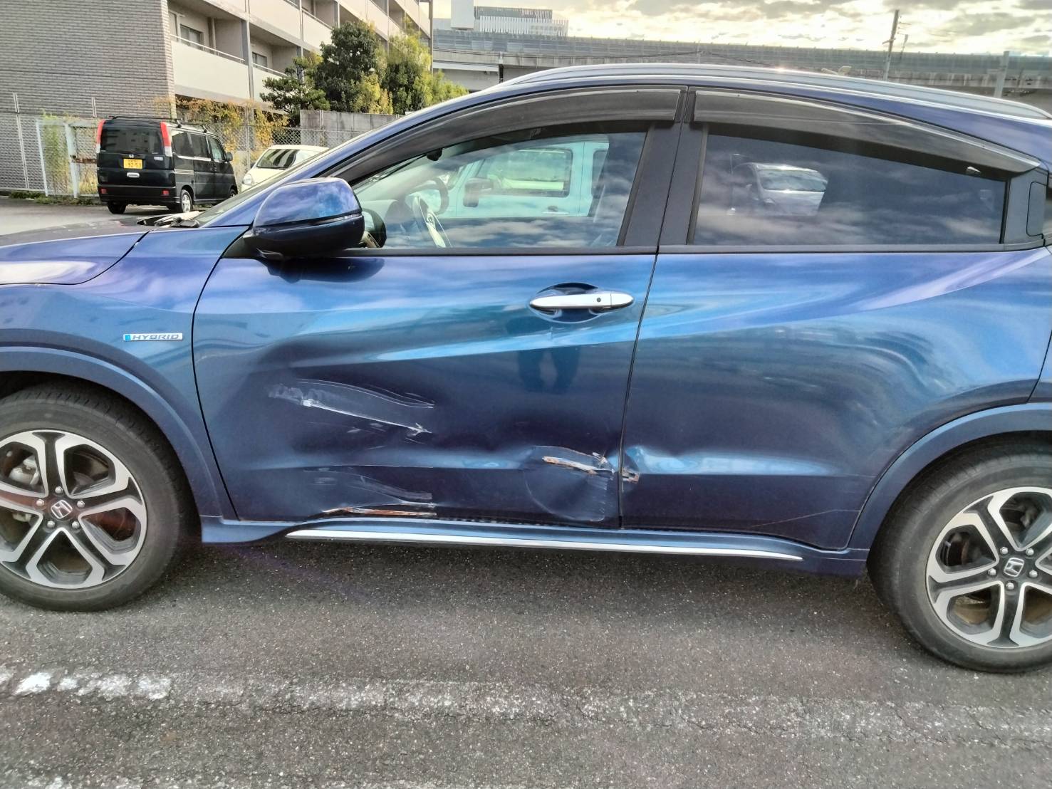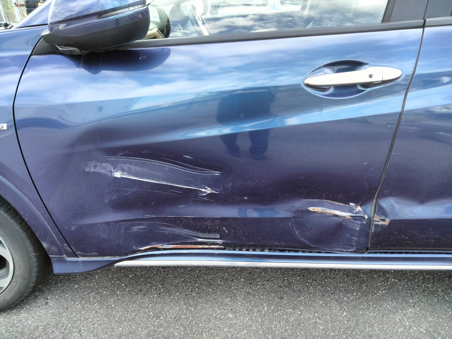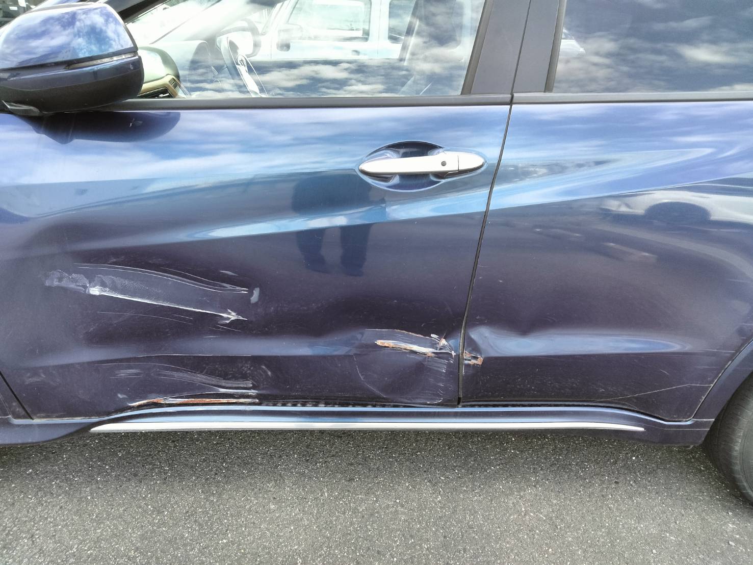 亀岡市M様 ホンダ ヴェゼル フロントドア傷・凹み修理 お見積りしました。