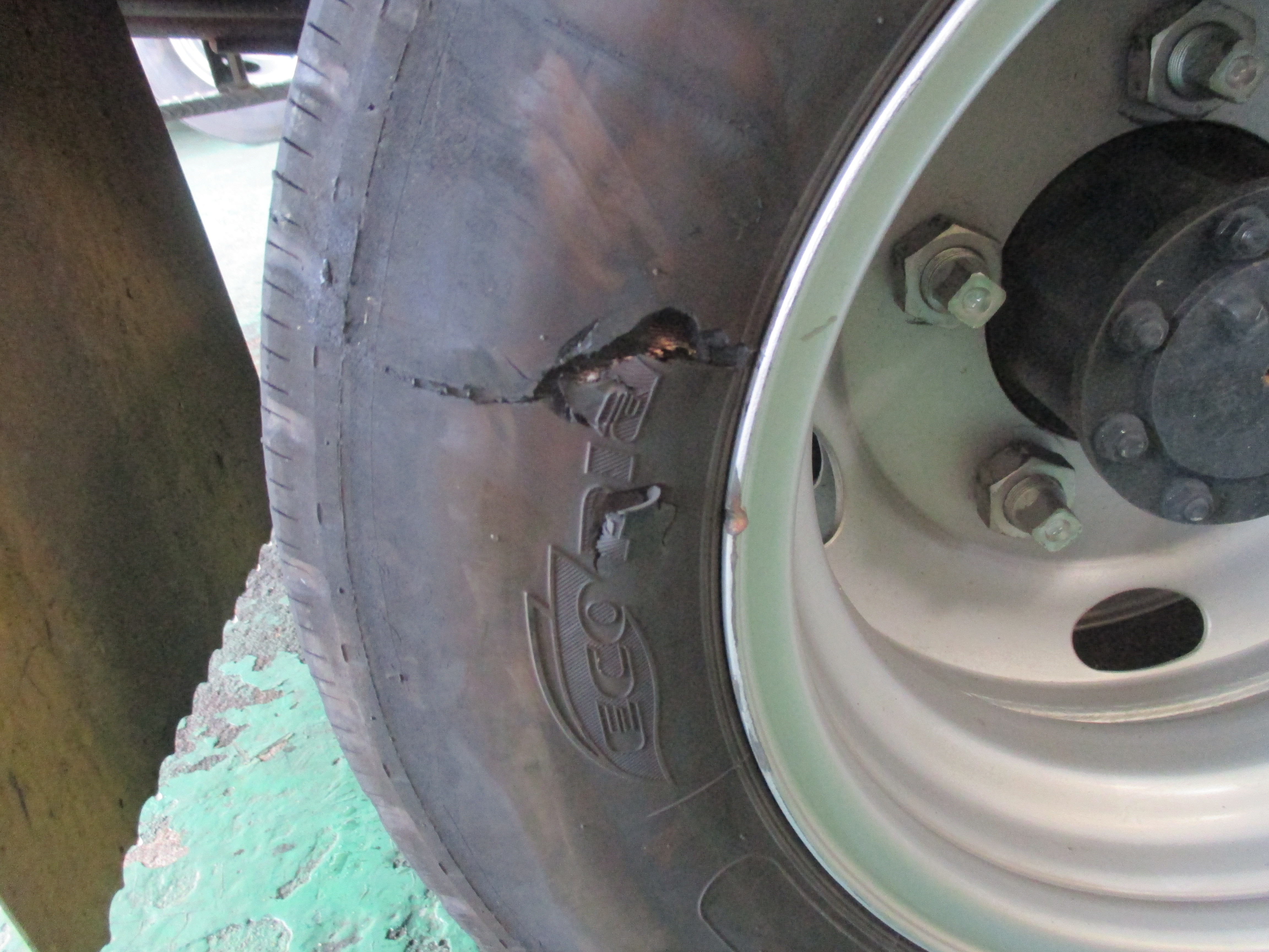 京都市 D様 2tトラック タイヤのサイドウォール 亀裂修理